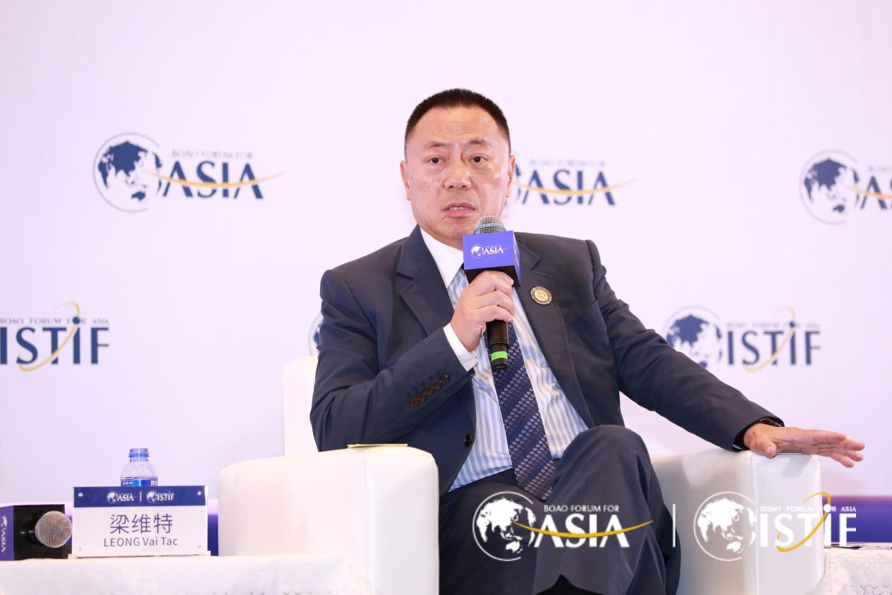 分論壇由博鰲亞洲論壇政策顧問、新聞發言人扎法爾主持,博鰲亞洲論壇理事、泰國前副總理素拉杰,斯里蘭卡外交部輔秘古納塞克斯,博鰲亞洲論壇粵港澳大灣區建設澳門委員會主席梁維特圍繞一帶一路話題展開討論。