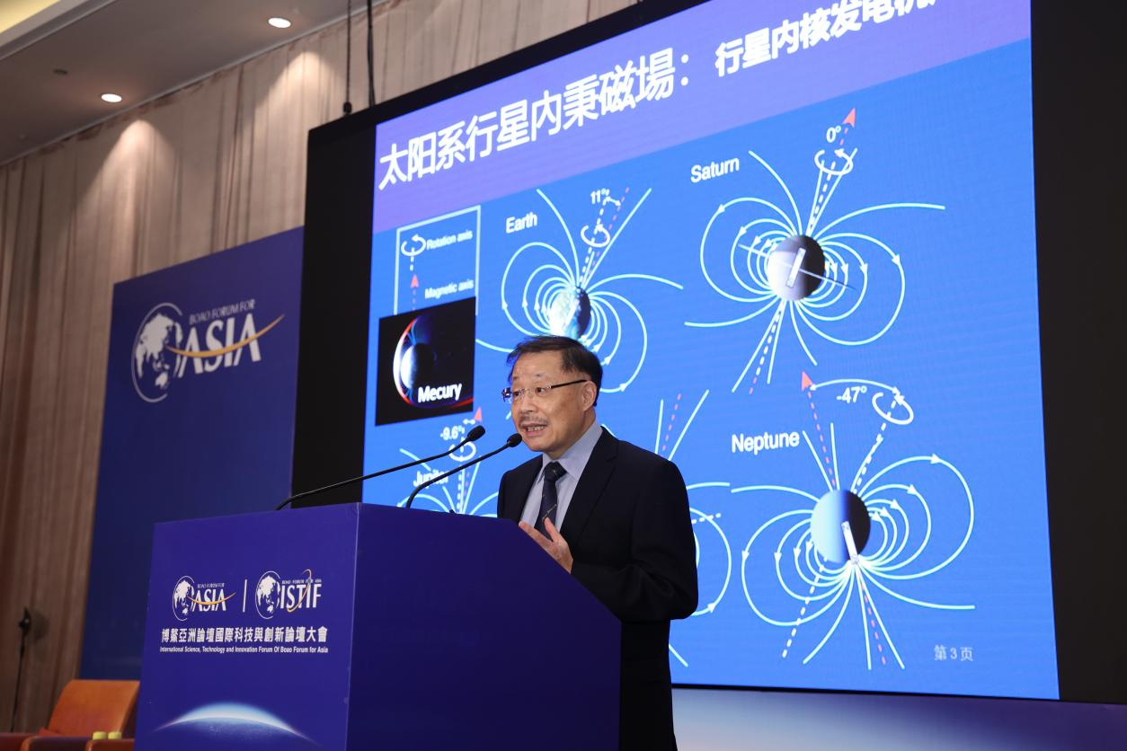 “創新動力——發展航天科技,引領太空探索新時代”分論壇由澳門特別行政區政府高等教育局代副局長謝永強主持。中國科學院院士、中國科學院紫金山天文臺臺長常進,中國科學院院士、中國科學院國家空間科學中心主任王赤,中國科學院院士、“天問一號”火星探測任務首席科學家、中國科學院地質與地球物理研究所研究員潘永信,月球與行星科學國家重點實驗室主任、“澳科一號”衛星任務首席科學家張可可四人圍繞航天科技與太空探索,分享各自在行星地球、近地環境、地月系統、日地空間、太陽系乃至恒星際宇宙領域的研究和科學進展,向觀眾展示了暗物質、空間科學、生命探測、地磁科學四大領域的最新研究成果和未來展望。